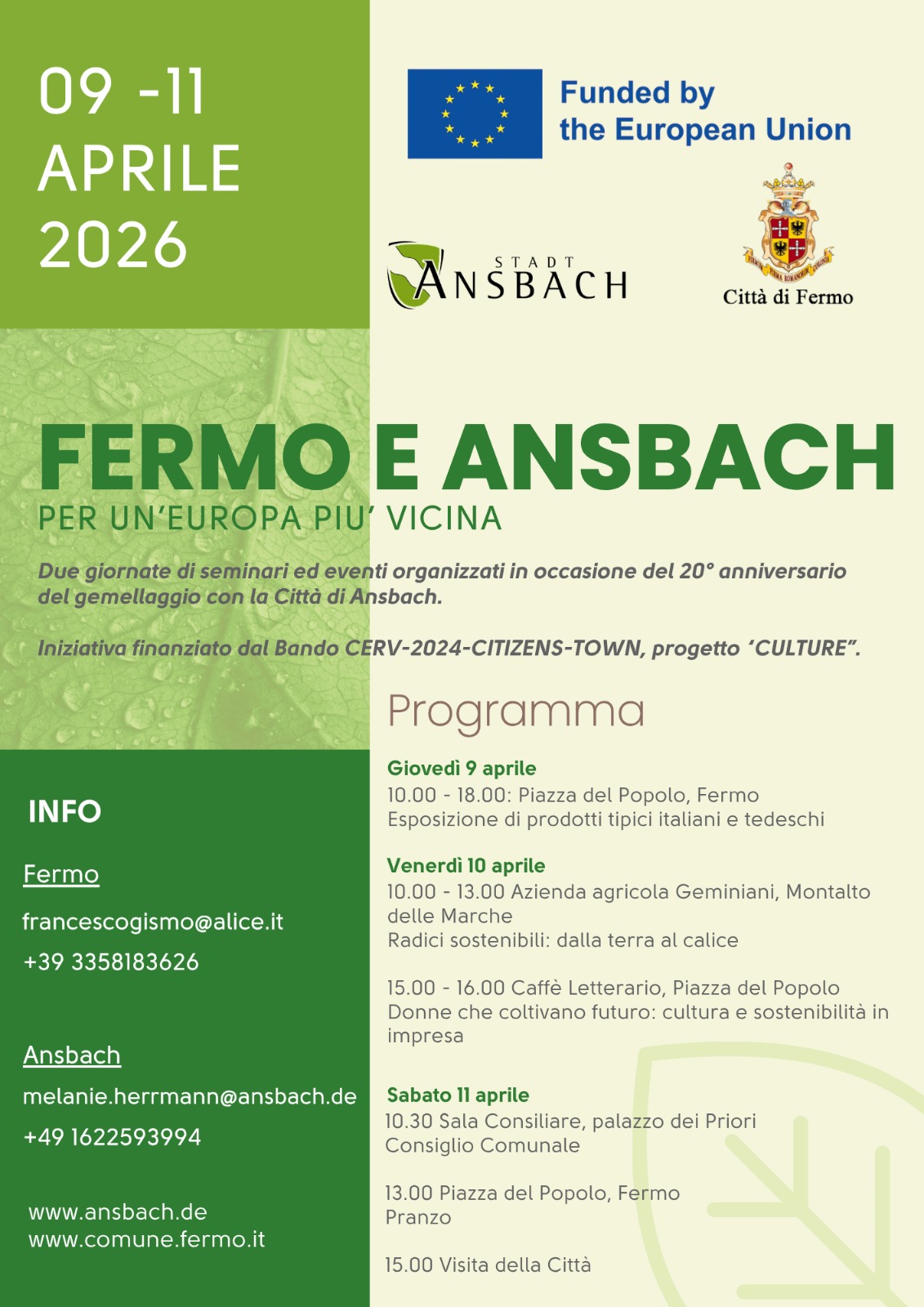 Nella giornata del 10 aprile si è svolto un importante momento di incontro e confronto nell’ambito delle attività di cooperazione internazionale, che ha visto la partecipazione di circa 100 persone, tra cittadini del territorio fermano e una delegazione proveniente dalla città tedesca di Ansbach, giunta appositamente per prendere parte alle iniziative in programma.